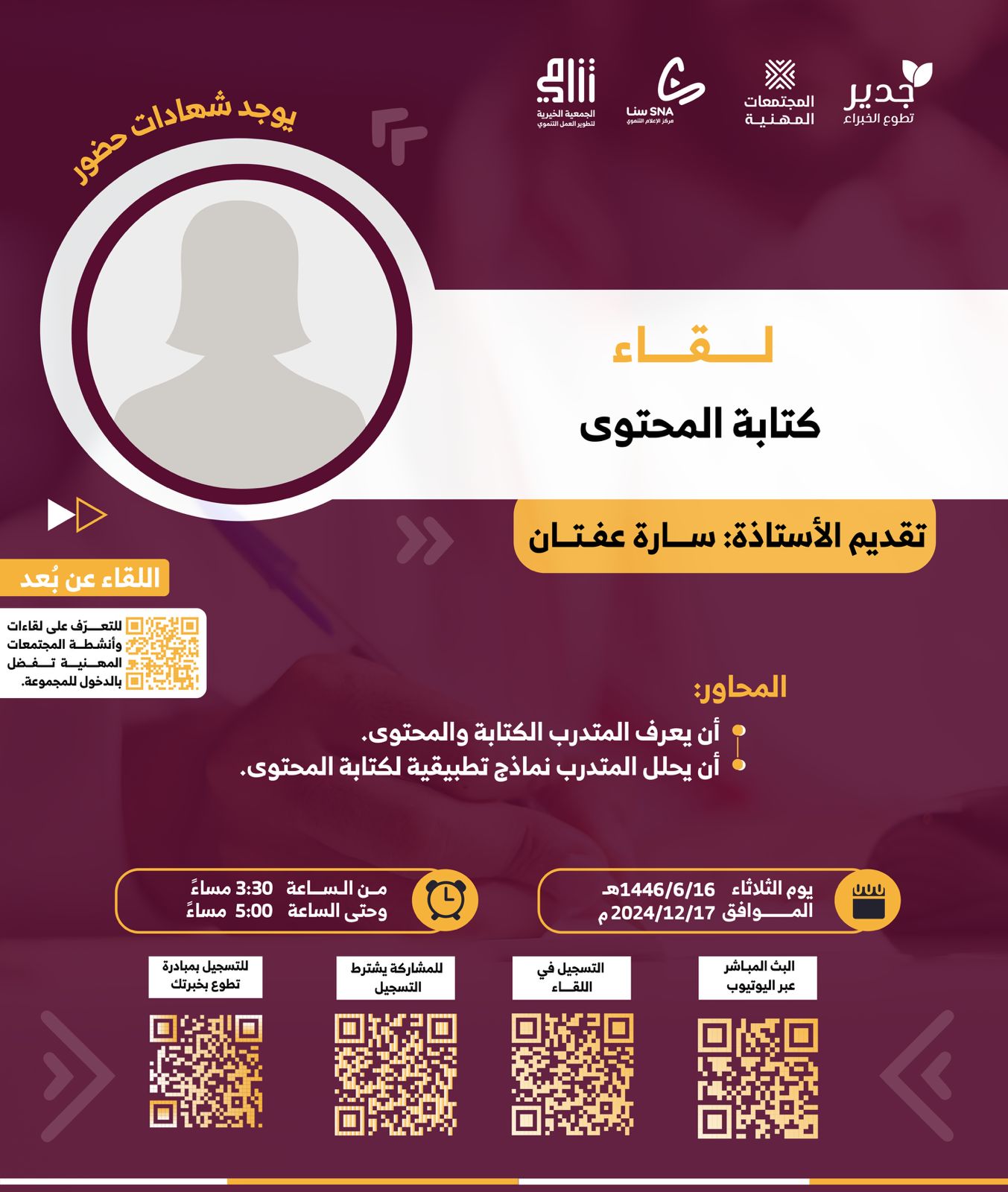 كتابة المحتوى تقديم: أ. سارة عفتان